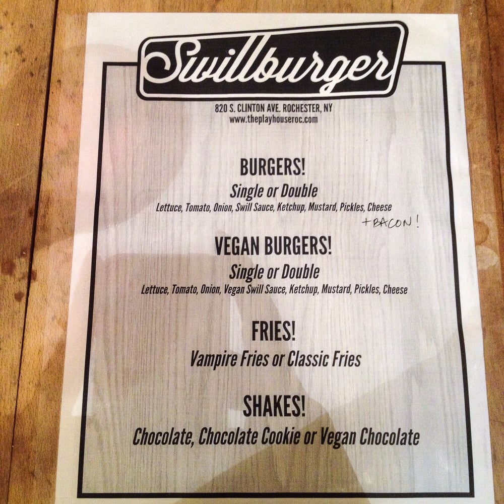 The Playhouse Swillburger is a vibrant spot in Rochester, NY, offering a mix of arcade games, a full bar, and delicious burgers. Their menu features locally sourced beef burgers, including the classic Beef Burger and the popular Veggie Burger made with beets, black beans, and brown rice. Sides like Classic Fries and Tots are crispy perfection, while their milkshakes are a sweet treat. Customers rave about the quality of the food, with fresh ingredients and homemade sauces adding to the overall dining experience. The retro atmosphere, complete with pinball games and friendly staff, creates a fun and welcoming environment. Whether you're looking for a great meal, drinks, or a night of gaming, The Playhouse Swillburger has something for everyone.